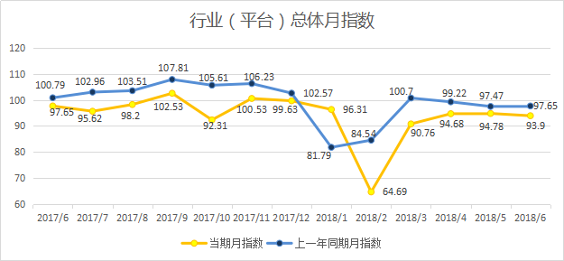 【行业总体月指数】2018年6月份公路运输效率指数93.9,低于基准数(100)6.1个指数单位;对比上个月下降了0.88个指数单位;与去年同期相比下降了3.75个指数单位。