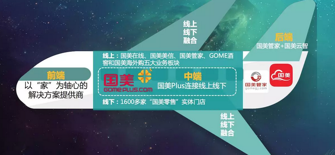 两个机翼是线上和线下的融合点,要打通资金流、商品流和物流。现在国美用一个国美Plus的互联网产品,把线下门店进行了连接。我们到实体门店所看到的商品,所有的物流服务、后台信息都是统一的。