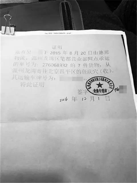 不过,吴女士的奔波还算有一点“成效”——拿到盖有德邦物流印章的两份证明。据吴女士说,这两份来之不易的证明都是德邦物流的人给她的。