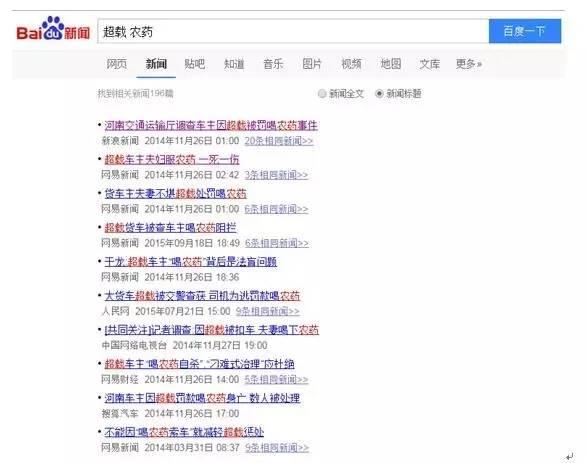 (搜索超载和农药,居然就蹦出来这么多的新闻条目)