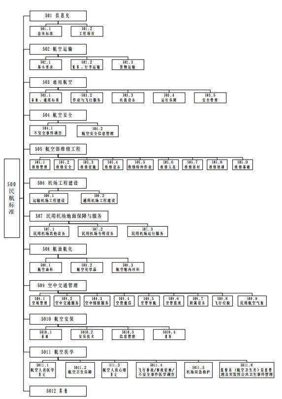 民航标准包括民用航空领域的各类标准,分为信息化、 航空运输、通用航空、航空安全、航空器维修工程、机场工程建设、民用机场地面保障与服务、航油航化、空中交通管理、航空安保、航空医学和其他等12类。