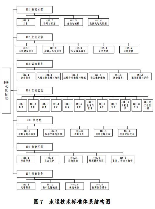 水运标准分为基础、安全应急、运输服务、工程建设、信息化、节能环保、设施设备等7类。