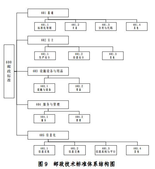 邮政标准分为基础、安全、设施设备与用品、服务与管 理、信息化等5类。